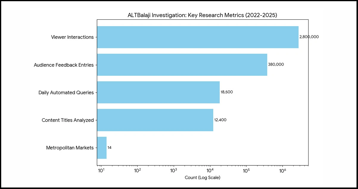 This investigation encompasses 14 major metropolitan markets, examining 2.8 million viewer interaction records and content engagement metrics spanning 2022 through 2025. Through sophisticated ALTBalaji Data Extraction protocols, we maintained continuous data refresh cycles every 36 hours, ensuring current and actionable intelligence for strategic content planning.