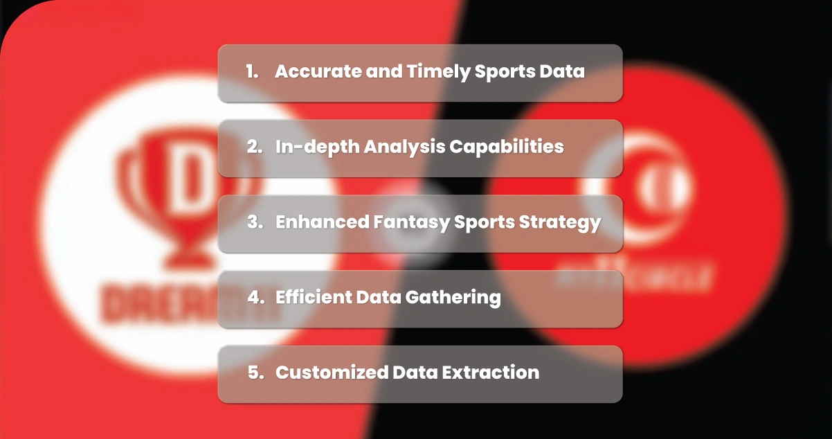 3. Enhanced Fantasy Sports Strategy: With our scraping services, you can extract key stats and historical performance data, giving you an advantage in platforms like Dream11 and My11Circle by making data-driven decisions for team selection.
